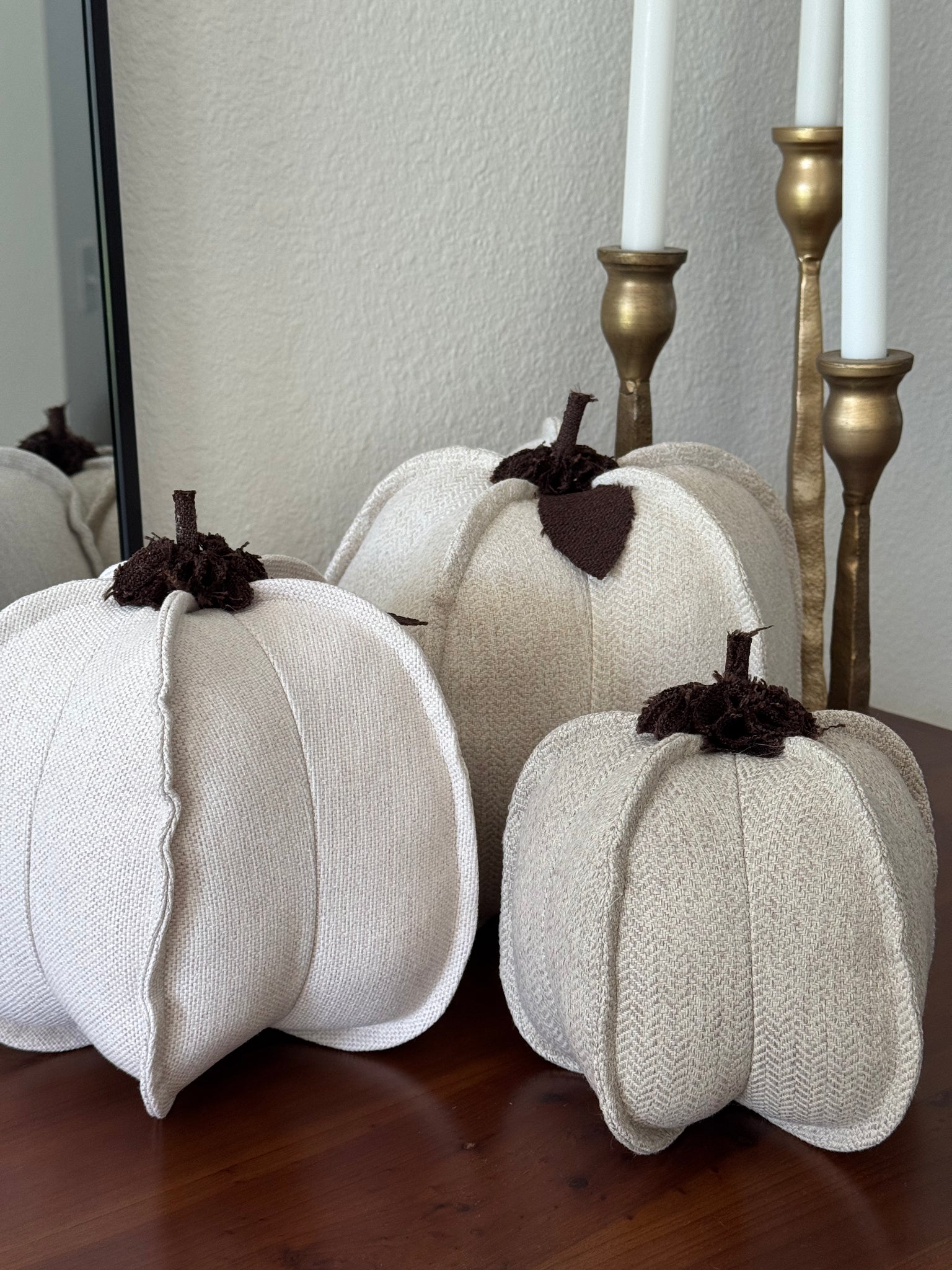 Make your house festive for fall year after year with our ethically made stuffed pumpkins. Each pumpkin is sewn and hand stuffed by our talented seamstresses who rely on this work as means to provide for their children. Choose from rustic harvest or off-white neutral. This set of three pumpkins is perfect for your dining table centerpiece, an entry bench, or separated as decor around the house!